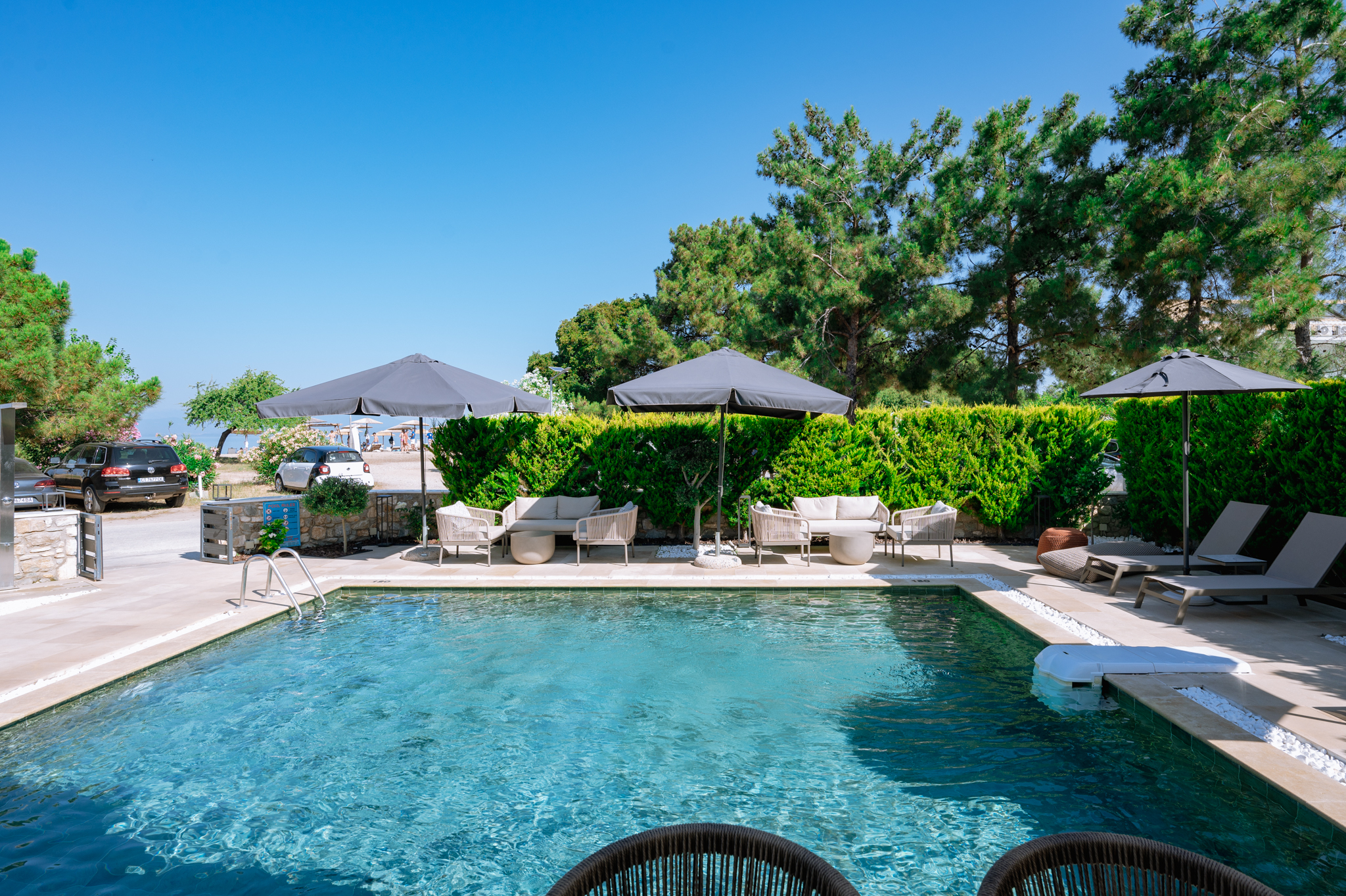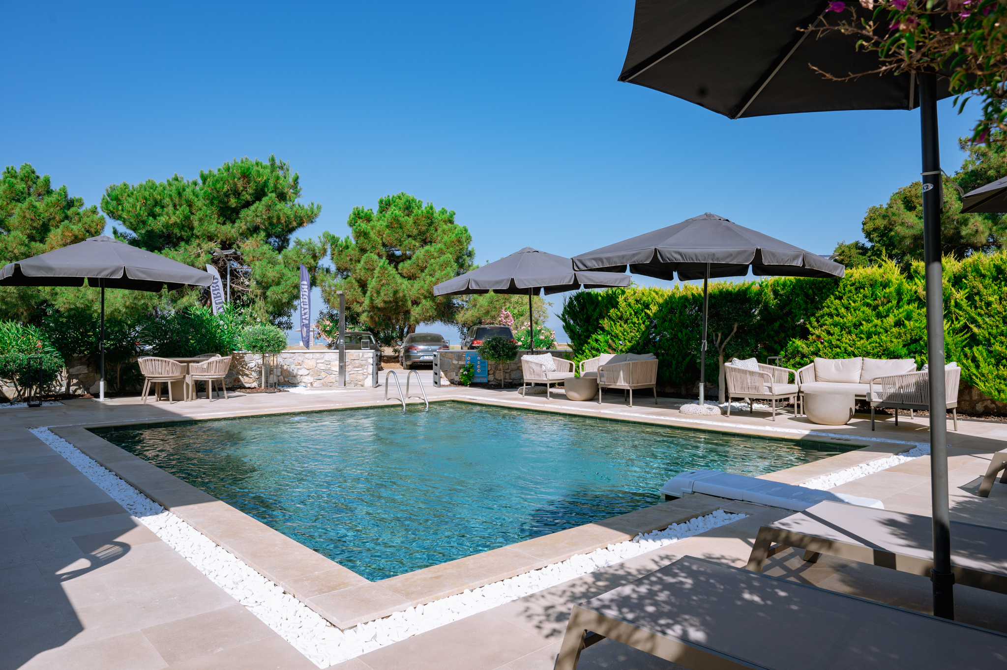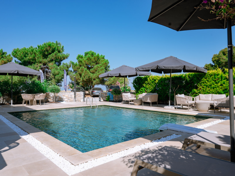 Sentimento Sea Breeze, a haven of rustic charm, embraces a design characterized by the warmth of olive wood, earthy clay accents, and captivating artwork adorned with the rich hues of olives. Immerse yourself in a captivating ambiance that pays homage to the olive tree, evoking a sense of tranquility and connection to the surrounding natural beauty. Step right out of your room onto the warm gold sand.