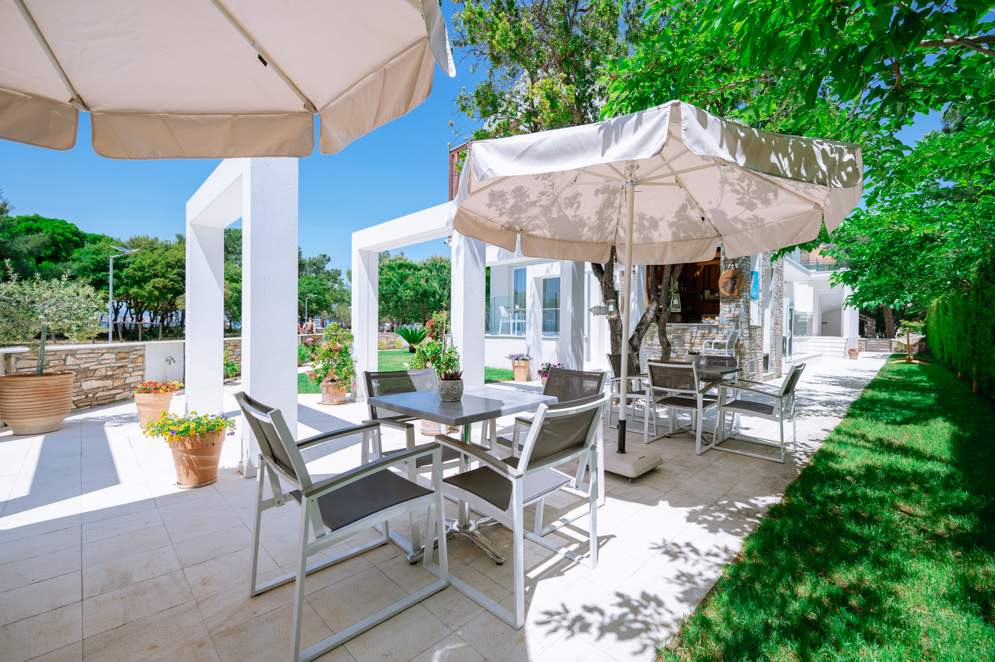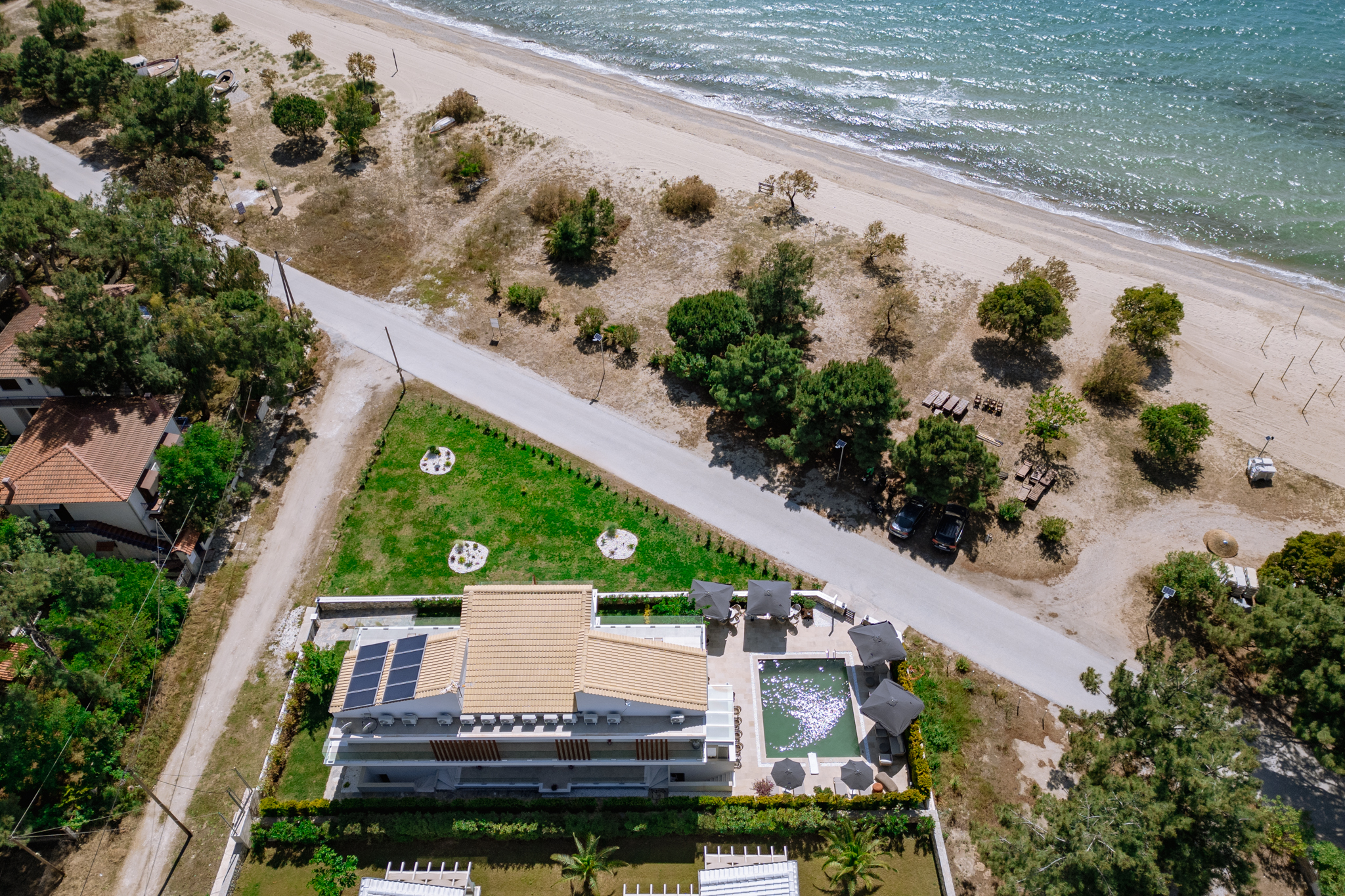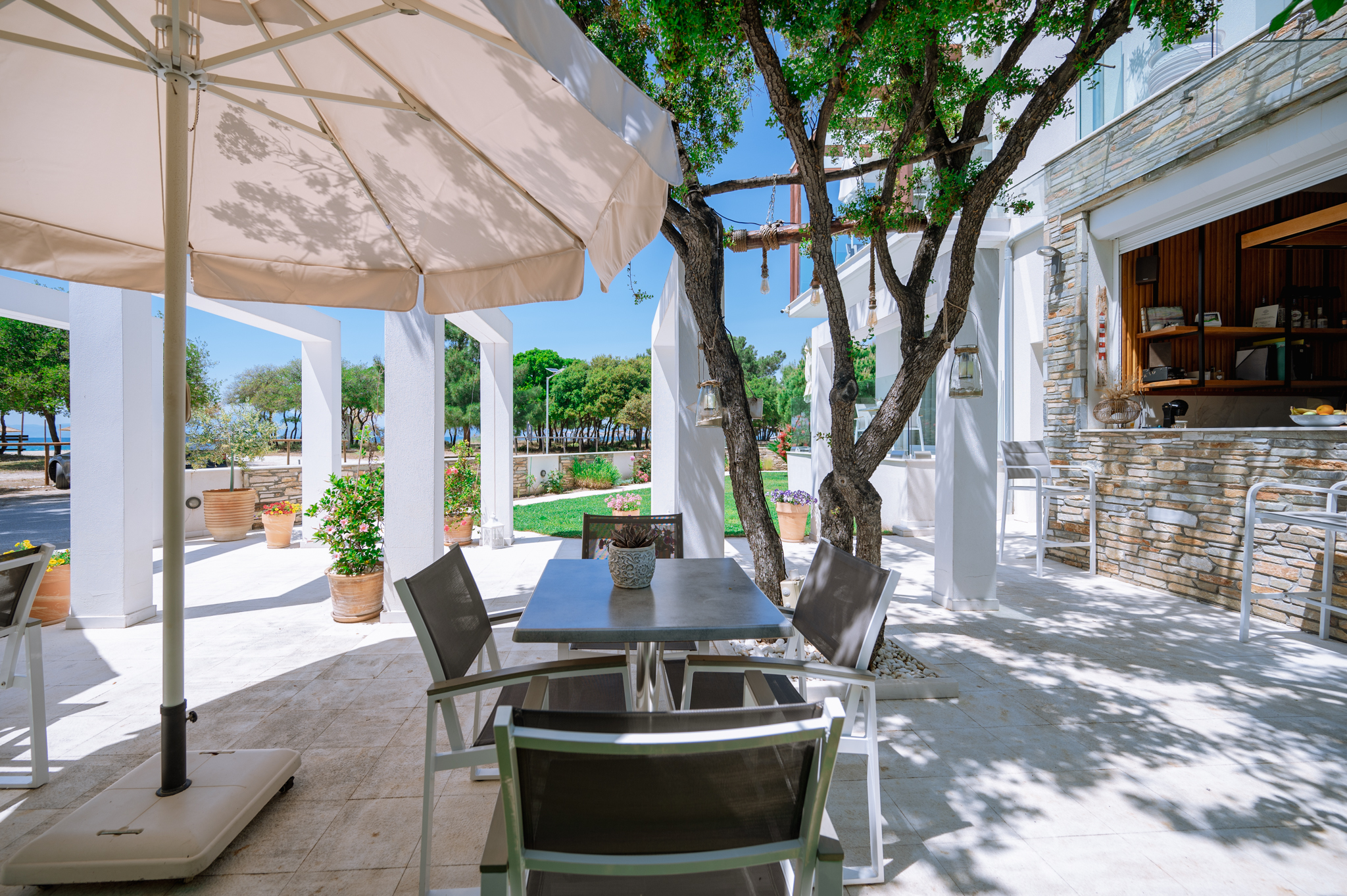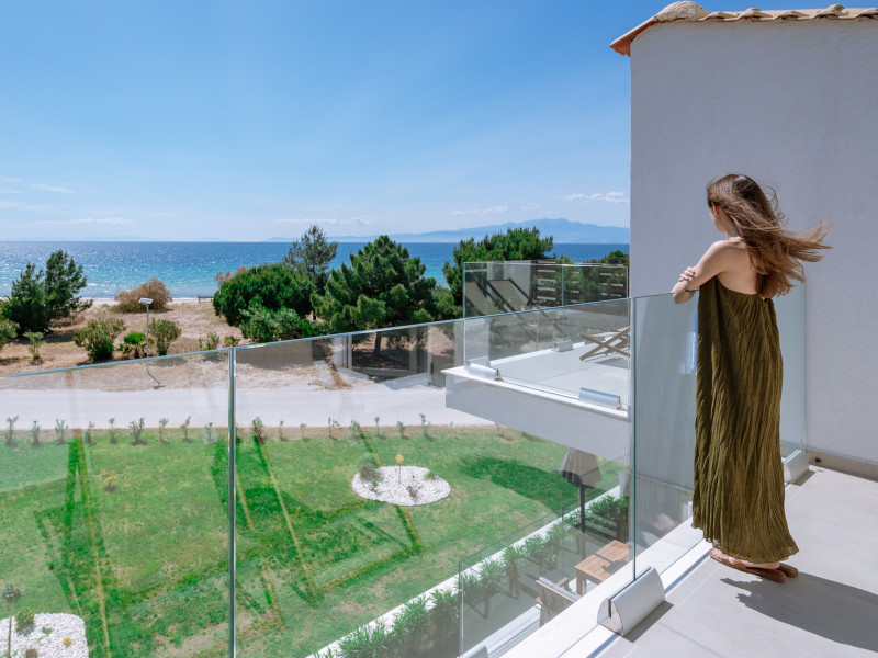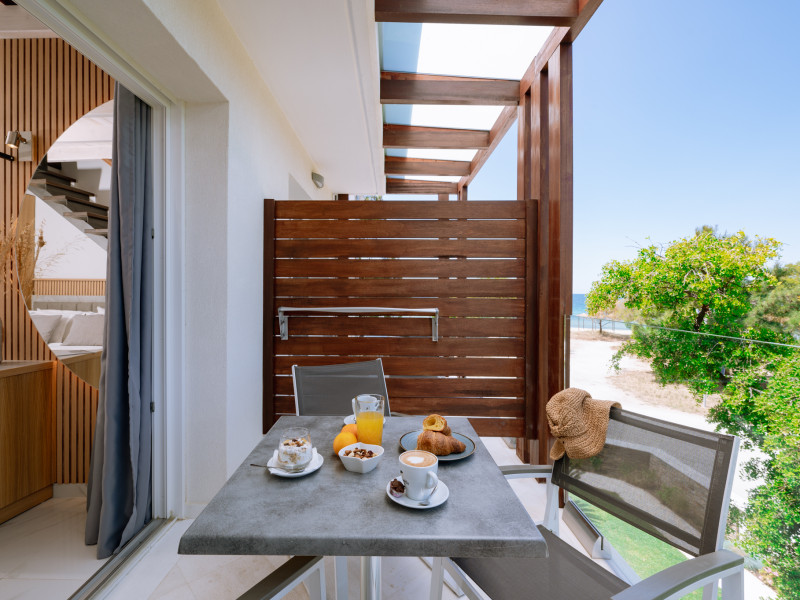 Sentimento Sea Breeze, a haven of rustic charm, embraces a design characterized by the warmth of olive wood, earthy clay accents, and captivating artwork adorned with the rich hues of olives. Immerse yourself in a captivating ambiance that pays homage to the olive tree, evoking a sense of tranquility and connection to the surrounding natural beauty. Step right out of your room onto the warm gold sand.