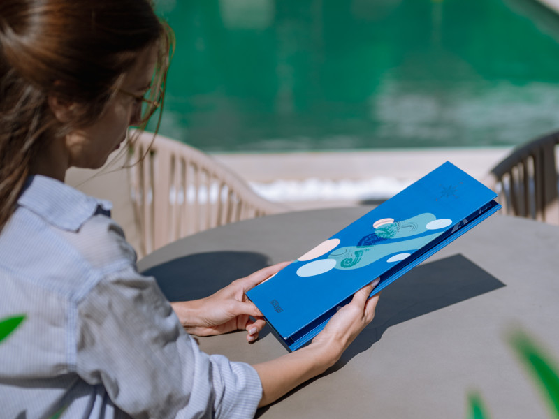 Sentimento, an oasis of elegance, showcases a design with the exquisite beauty of natural Thasos marble, infused with sea-inspired elements painted in captivating shades of sea blue. Immerse yourself in a world where the harmony of nature and coastal aesthetics come together, creating a serene and enchanting atmosphere that invites relaxation and rejuvenation.